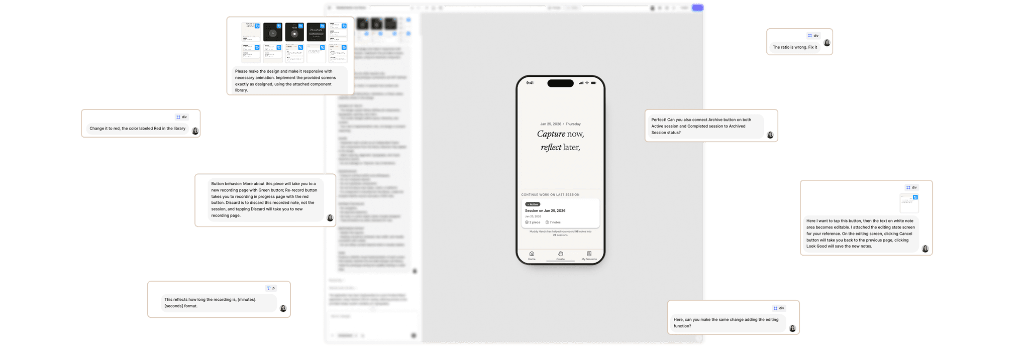 I created a small, purpose-built design system in Figma to support consistency across capture and reflection states.